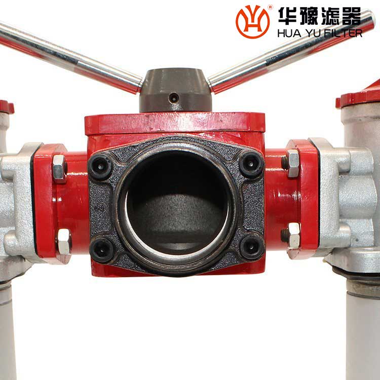 它的工作特點(diǎn)是當(dāng)一只過(guò)濾器濾芯堵塞需要更換時(shí),不需要停止主機(jī)工作,只要打開(kāi)壓力平衡并轉(zhuǎn)動(dòng)換向閥,另一只過(guò)濾器即可參加工作,然后更換已堵塞的濾芯。
