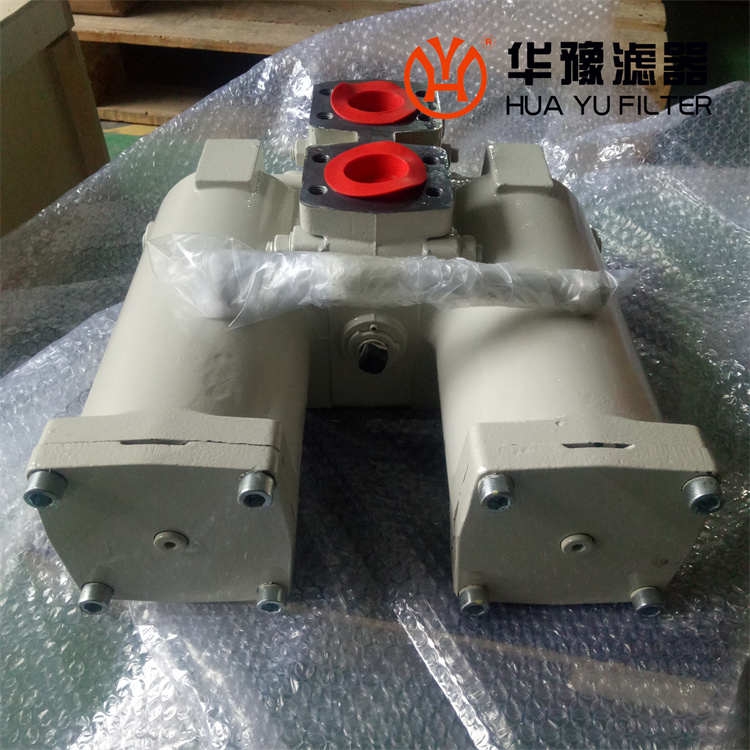 工作時一只濾筒通油,另一只濾筒不通油備用。當工作濾筒的濾芯堵塞至壓差發(fā)訊器壓力指示值為0.5MPa時,發(fā)訊器發(fā)訊,此時應及時打開壓力平衡閥、轉動換向閥啟用備用濾筒(換向閥轉動到位后關閉壓力平衡閥)。再只需旋開螺塞放完被堵塞濾筒內的油液,再旋下筒體,就可更換已堵塞的濾芯。如因故未能及時切換換向閥啟用備用濾筒,導致壓差持續(xù)上升至旁通閥開啟壓力0.6MPa時,旁通閥會自動開啟,以避免由于壓力繼續(xù)上升,濾芯破裂造成再污染。但此時油液未經過濾對系統(tǒng)安全造成極大危害,應盡可能避免旁通閥被開啟。