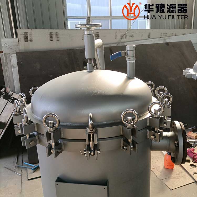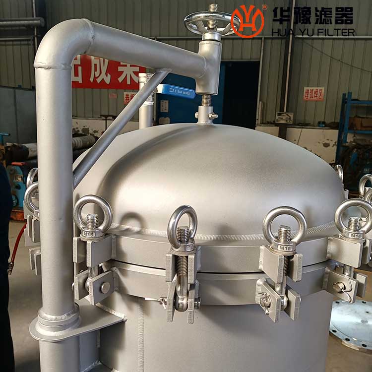 5)擰開上蓋吊帽,提起上蓋,多袋濾機(jī)需轉(zhuǎn)過(guò)一定角度。