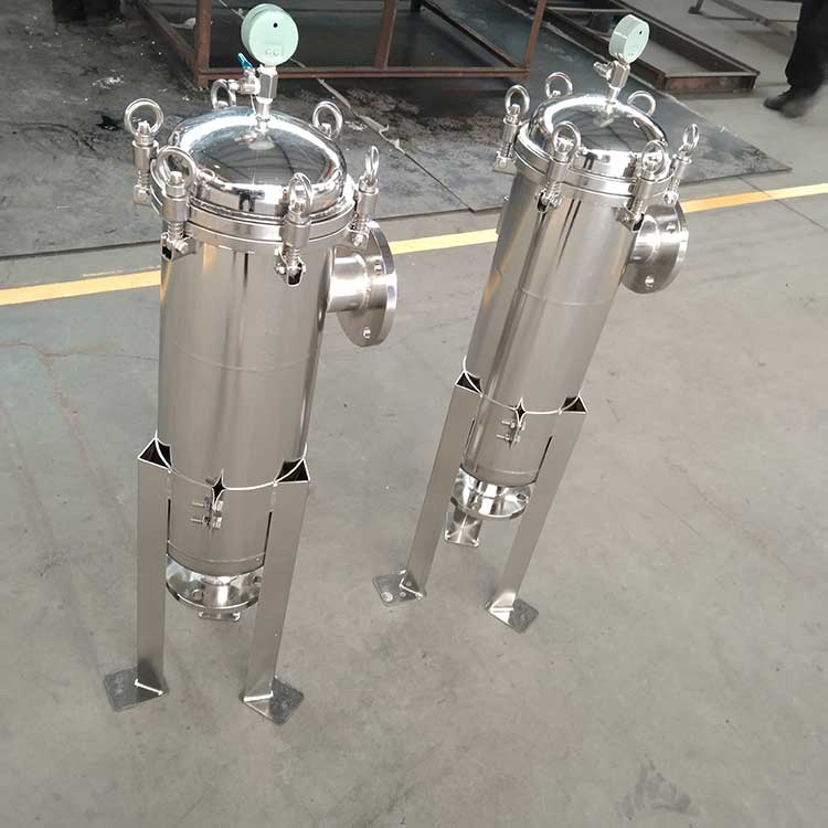 袋式過濾機(jī)是一種壓力式過濾裝置,主要有過濾筒體、過濾筒蓋和快開機(jī)構(gòu)、不銹鋼濾袋加強(qiáng)網(wǎng)等主要部件組成,濾液由過濾機(jī)外殼的旁側(cè)入口管流入濾袋,濾袋本身是裝置在加強(qiáng)網(wǎng)籃內(nèi),液體滲透過所需要細(xì)度等級(jí)的濾袋即能獲得合格的濾液,雜質(zhì)顆粒被濾袋攔截該機(jī)更換濾袋十分方便,過濾基本無物料消耗。袋式過濾器具備構(gòu)造合理、密封性好、流通才能強(qiáng)、操作簡(jiǎn)便等諸多長(zhǎng)處。尤其是濾袋側(cè)漏機(jī)率小,能正確地保障過濾精度,并能快捷地改換濾袋,使得操作成本下降。濾器內(nèi)外表面采取機(jī)械噴砂拋光解決,平均、易清洗。我們知道,袋式過濾器所采取的過濾方法是側(cè)進(jìn)側(cè)出的方法,也可以采取側(cè)進(jìn)底出的方法,通過管道中的壓力將過濾液體介質(zhì)壓入或抽入袋式過濾器桶體,要過濾的液體介質(zhì)經(jīng)由電拋光沖孔支持濾藍(lán)承托的過濾袋的過濾,發(fā)生變化的固液分別到達(dá)液體介質(zhì)被過濾的結(jié)果。