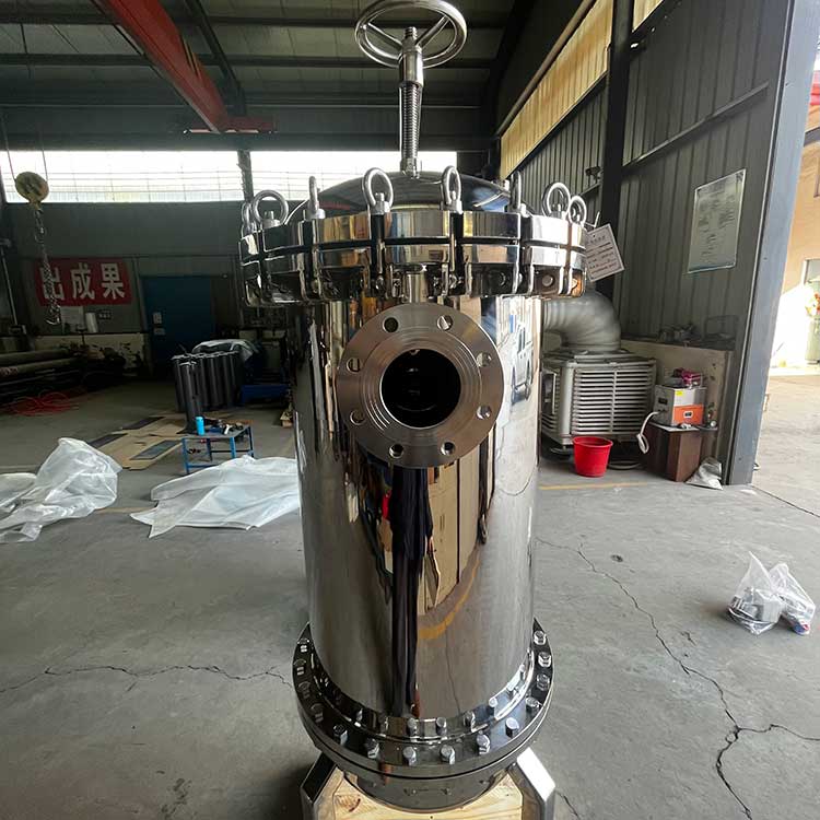 袋式過(guò)濾器一種結(jié)構(gòu)新穎、體積小、操作簡(jiǎn)便靈活、節(jié)能、高效、密閉工作、適用性強(qiáng)的多用途過(guò)濾設(shè)備。袋式過(guò)濾器是一種新型的過(guò)濾系統(tǒng)。袋式過(guò)濾器內(nèi)部由金屬網(wǎng)籃支撐濾袋,液體由入口流進(jìn),經(jīng)濾袋過(guò)濾后從出口流出,雜質(zhì)攔截在濾袋中,更換濾袋后可繼續(xù)使用。