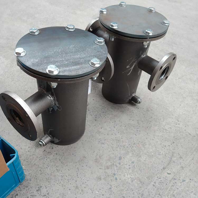 籃式過濾器主要由接管、筒體、濾籃、法蘭、法蘭蓋及緊固件等組成。當(dāng)流體進(jìn)入有一定規(guī)格的濾網(wǎng)的濾桶后,其雜質(zhì)被阻擋,而清潔的濾液則由過濾器出口排出,當(dāng)需要清洗時,只要將可拆卸的濾桶取出,處理后重新裝入即可,因此,使用維護(hù)極為方便?;@式過濾器具有結(jié)構(gòu)簡潔,阻力小,排污方便等特點(diǎn)。適用介質(zhì)可為水、油、氣。一般通水網(wǎng)為18~30目,通氣網(wǎng)為40~100目,通油網(wǎng)為100~480目,可按用戶要求制作濾網(wǎng),介質(zhì)溫度:≤200℃。