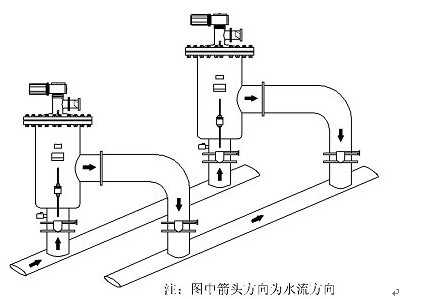 (6)安裝時(shí)應(yīng)考慮便于檢修,自清洗過濾器前后應(yīng)安裝關(guān)斷閥門,且應(yīng)安裝旁通管道。
